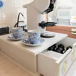 El alojamiento no solo ofrece servicio de tetera/cafetera, sino también una cocina completa con un hervidor eléctrico, una nevera y un horno. El alojamiento está cerca de la parada de autobús más cercana, Amalfi.